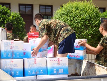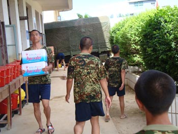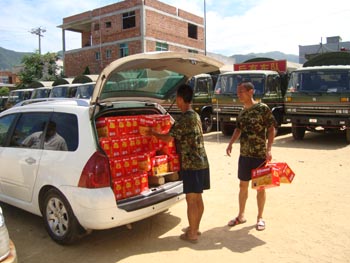 2008年7月18日,新味公司總經(jīng)理黃細忠與公司數(shù)名員工走訪霞莆某駐軍部隊,并攜帶價值1萬元人民幣的新味公司生產(chǎn)的新味牌純凈水和糕點用于改善該駐軍部隊官兵的生活。向仍在夏日的烈日下操作的全體部隊官兵致以親切的慰問和崇高的敬意。瑾代表新味公司對祖國部隊的擁護,對部隊官兵的關(guān)心,感謝部隊對社會做出的貢獻。