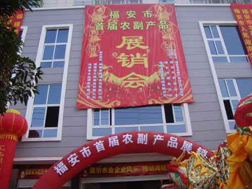 福建新味食品有限公司發(fā)起舉辦福建省福安市首屆農(nóng)副產(chǎn)品展銷會,在福安市農(nóng)副產(chǎn)品加工行業(yè)協(xié)會的大力協(xié)助下,于2009年1月17日-21日開展。本屆展會聚集福安市農(nóng)業(yè)產(chǎn)業(yè)化省級重點(diǎn)龍頭企業(yè)在內(nèi)的38家農(nóng)副產(chǎn)品企業(yè),產(chǎn)品品種囊括蜜餞、果脯、糕點(diǎn)、餅干、水果、竹筍、水產(chǎn)品、糧油、調(diào)味品、酒類、木制餐具等。