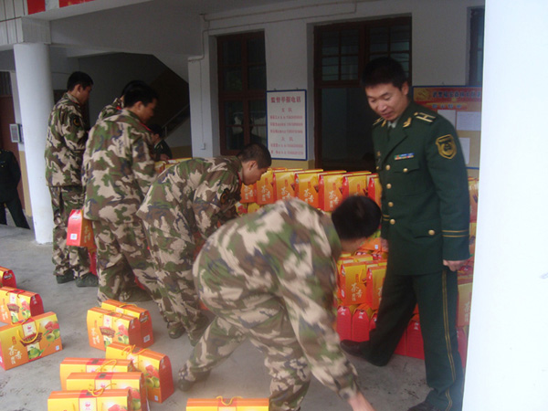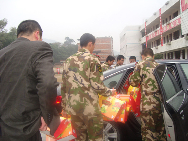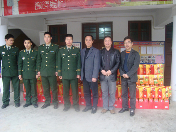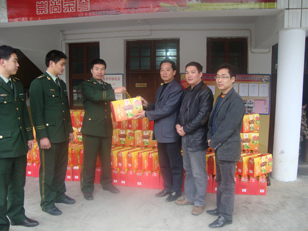 2010年02月02日,市委常委丁瑞康同志攜同新味公司總經(jīng)理黃細(xì)忠同志到駐扎在福安市溪潭鎮(zhèn)的森林公安武警進行慰問。感謝森林公安武警為福安人民所做的貢獻(xiàn),并給武警管兵們送去由新味公司所生產(chǎn)的年貨禮品。