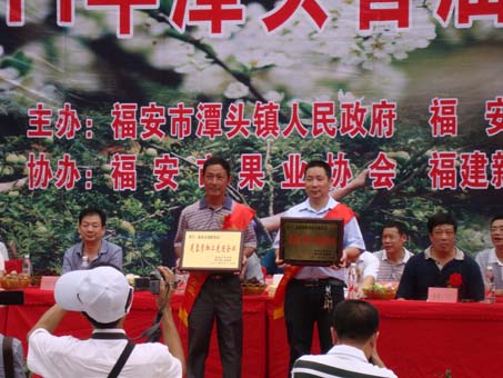 7月29日,在福安市潭頭鎮(zhèn)“首屆芙蓉李節(jié)”交流會(huì)上,果農(nóng)們紛紛“秀”出自家的芙蓉李。專家現(xiàn)場(chǎng)評(píng)選出芙蓉李優(yōu)質(zhì)果品和芙蓉李加工先進(jìn)企業(yè)。我司芙蓉李種植基地種植出的芙蓉李被評(píng)為二等獎(jiǎng),并榮獲芙蓉李加工先進(jìn)企業(yè)。我司董事長(zhǎng)現(xiàn)場(chǎng)與潭頭鎮(zhèn)芙蓉李協(xié)會(huì)簽訂采購(gòu)合約。