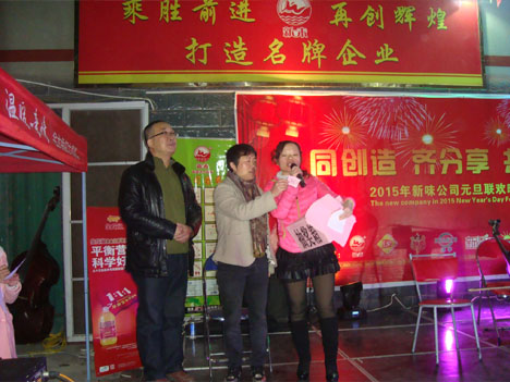 不知不覺又度過了蓬勃發(fā)展的一年,喜悅伴著汗水,成功伴著艱辛,告別激情的2014,迎接嶄新的2015。新年來臨之際,我司聯合東升、環(huán)宇、新品香、金太陽、許寶洋、易時代于12月31日晚在本公司舉行以“同創(chuàng)造 齊分享 共飛揚”為主題的元旦聯歡晚會。